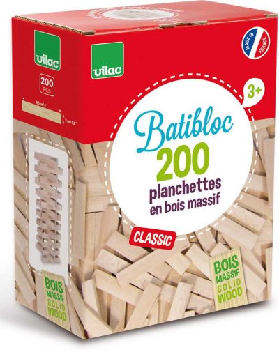 Stavebnica vyrobená z prírodného masívneho dreva. Obsahuje 200 malých dosiek, ktoré pomáhajú deťom rozvíjať ich predstavivosť. Balenie tiež obsahuje stavebné návody. Vyrobené vo Francúzsku. Hlavné vlastnosti: podporuje predstavivosťobsahuje 200 dielikovvyrobených vo Francúzsku
