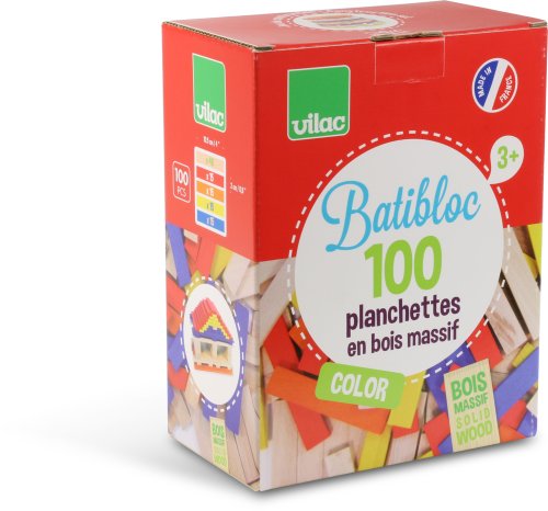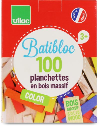 Stavebnica vyrobená z masívneho dreva. Obsahuje 100 malých farebných aj prírodných dosiek, ktoré pomáhajú deťom rozvíjať ich predstavivosť. Balenie tiež obsahuje stavebné návody. Vyrobené vo Francúzsku. Hlavné vlastnosti: podporuje predstavivosťobsahuje 100 dielikovvyrobených vo Francúzsku