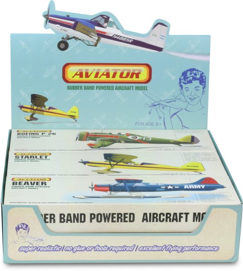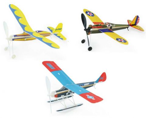 Cena za 1 ks. Lietadlá s naťahovacou vrtuľou – dá sa natiahnuť gumičkou. Na výber z 3 typov lietadiel, napr. Boeing P-26 alebo Beaver. Hlavné vlastnosti: ľahký materiál naťahovanie na gumičku