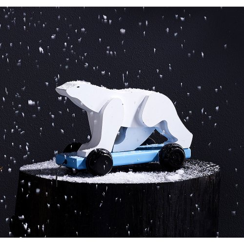 Drevený ťahací ľadový medveď v dizajne Francoisa Pompona. Hlavné vlastnosti: design Francois Pompon rozvíja koordináciu pohybov detí So svojím malým prenosným pracovným stolom sa sochár François Pompon (1855–1933) rád prechádzal po parížskom Jardin des Plantes (verejný park a botanická záhrada). Tam mohol pozorovať zvieratá a vyrábať ich modely v malom meradle. Späť vo svojom ateliéri vyrezával medvede, pantery, ale aj psy, kurčatá a králiky, zjednodušovaním tvarov nachádzal podstatu každého zvieraťa. Pred očami návštevníkov Múzea Orsay, kde je uložené veľké množstvo týchto sôch, tak zvieratá ožívajú! Jeho sochy reinterpretoval umelec Gérard Lo Monaco av spolupráci s RMN (združenie 34 múzeí) a Múzeom Orsay vzdáva poctu Pomponovi výrobou tohto nádherného radu drevených hračiek.