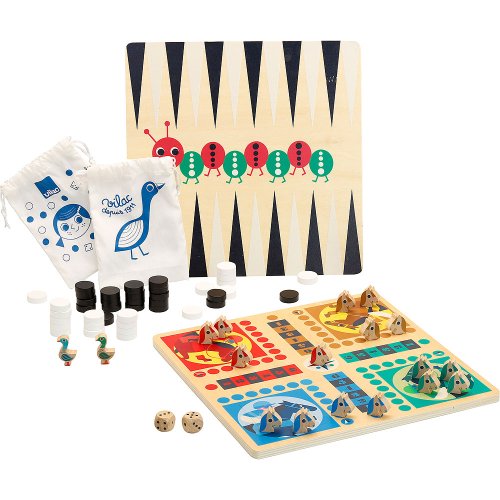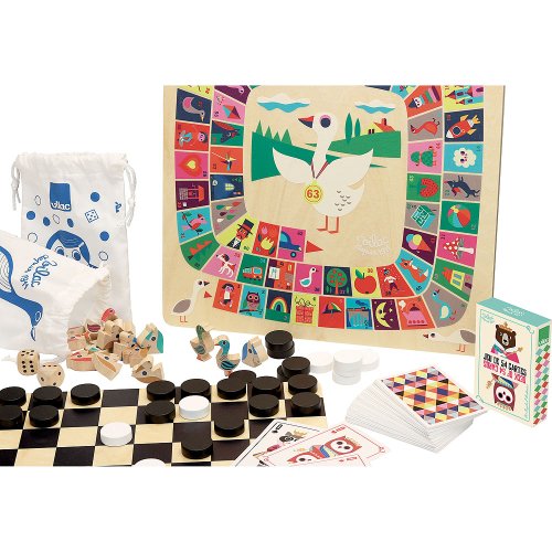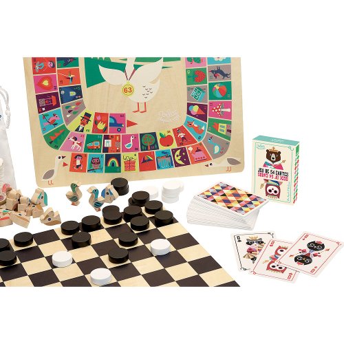 Súbor hier, v ktorom nájdete žolíkové karty, dámu, človeče, backgammon a husaciu hru. Je ilustrovaný Ingelou P. Arrhenius vo vintage duchu. Skladá sa z 2 drevených herných dosiek, ktoré sú obojstranné. Figúrky sú zabalené v textilných vrecúškach. Kariet je 52 ks. Vhodné od 4 rokov. Hlavné vlastnosti: súbor klasických herdesign Ingela P. Arrhenius Švédska umelkyňa Ingela Peterson Arrhenius sa narodila v roku 1967. Umenie a dizajn mali vždy miesto v jej živote a než začala jej kariéra ilustrátorky, Ingela pracovala ako umelecká vedúca v Štokholme. Potom študovala reklamný a grafický dizajn na umeleckej škole aj v Štokholme. V roku 1992 začala podnikať ako ilustrátorka na voľnej nohe a pracovala medzinárodne naprieč reklamou, dizajnom, vydavateľstvom… V minulosti vytvárala tlačové vzory pre tkaniny, tapety, papiernictvo, taktiež pracovala na obaloch, produktovom dizajne, bytových doplnkoch a hračkách. Jej plagáty a designové hračky nájdete po celom svete. Má vášeň pre retro štýl, čo je jasne vidieť na ich dieloch a taktiež v jej nadšení pre typografiu a farby. Teraz žije v Štokholme s manželom a dvoma synmi.