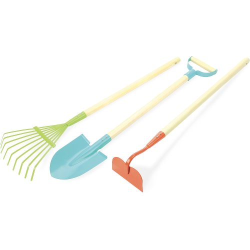 Veľký záhradnícky set obsahuje rukavice, motyku, hrable a rýľ. Zahradnite ako profesionáli! Skvelá hračka, ktorá deti učia starostlivosť o záhradu. Vyrobené z kovu a dreva. Hlavné vlastnosti: ideálna veľkosť pre detirozvíja motoriku, rovnováhu a vzťah k prírodevyrobené z kovu, drevená násada