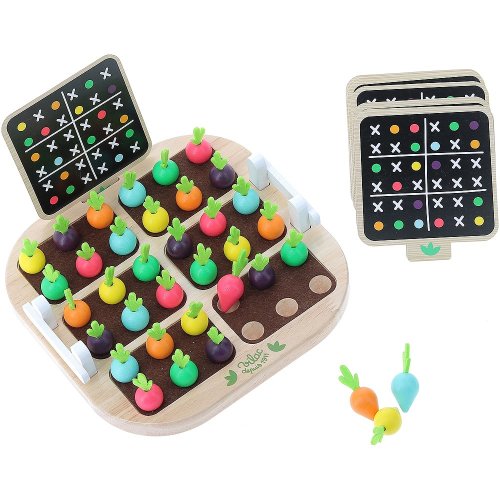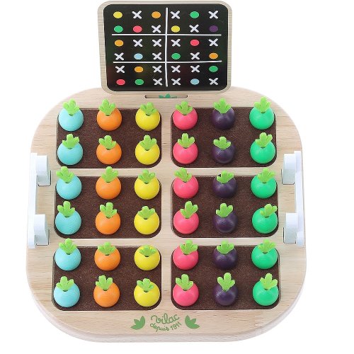 Zeleninové sudoku pre najmenších! Cieľ hry je jednoduchý - musíte umiestniť drevenú zeleninu do záhradky podľa jednej z kartičiek, potom podľa pravidiel sudoku vyplniť prázdne políčka. V jednom štvorci, riadku a stĺpci sa nesmie opakovať rovnaká farba. Zábavná a farebná hra pre ľudí všetkého veku! Hlavné vlastnosti: atraktívne farebné prevedenie hra pre všetky vekové kategórie pomáha rozvíjať logické myslenie a sústredenosť detí rám zaisťuje stabilitu Rozmery: 21 x 5 x 21 cm Vek: 5 + Materiál: drevo, plsť, papier 3 úrovne obtiažnosti Počet dielov: 67 ks