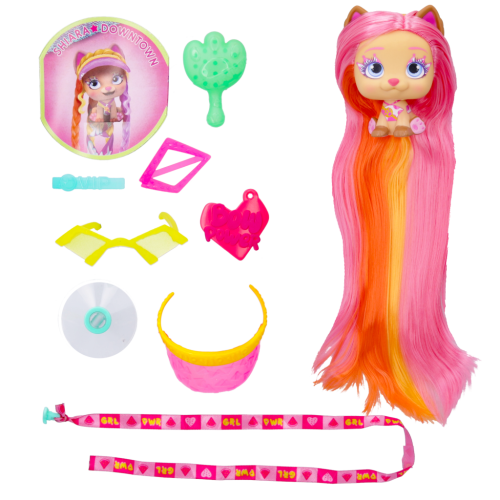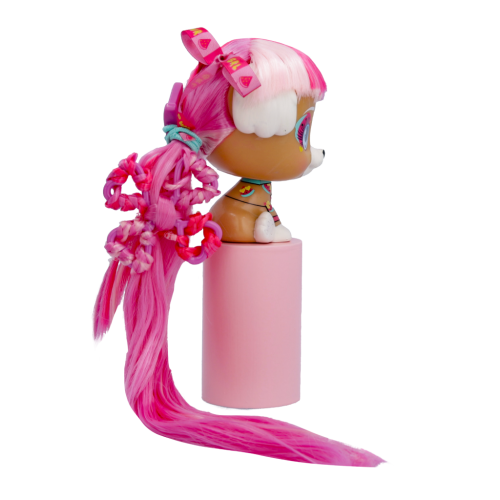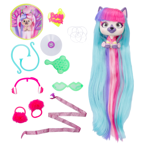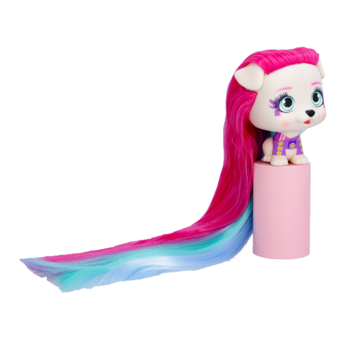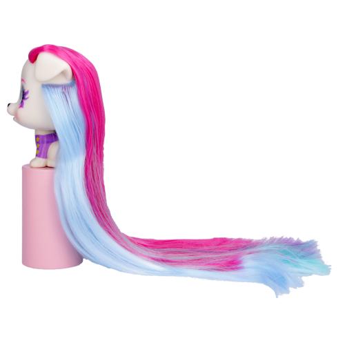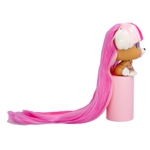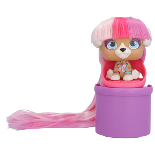Každý z týchto psíkov obsahuje viac ako deväť prekvapení a šesť rôznych vlasových doplnkov, ktoré podnecujú kreativitu a objavovanie. Súčasťou balenia je aj kadernícke kreslo, ktoré slúži ako praktický doplnok na úpravu vlasov figúrok, čím sa hra stáva ešte interaktívnejšou. Kreslo je zhotovené z kvalitného plastu v živých farbách a má detaily, ktoré evokujú skutočné kadernícke prostredie, čím prispieva k realistickosti zážitku z hrania.