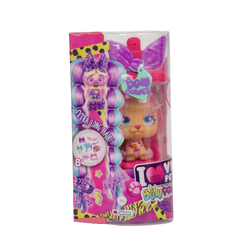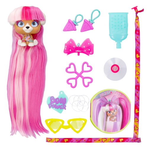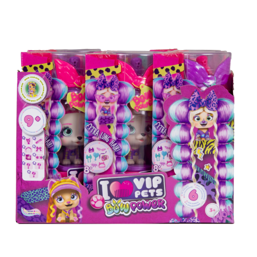 VIP Pets Bow Power je sada tematických figúrok psov určená pre deti vo veku od 4 do 6 rokov, ktorá ponúka zábavnú a kreatívnu hru s úpravou vlasov. V balení nájdete šesť rôznych psíkov menom Kim, Natty, Aurora, Shiara, Gwen a Juliet, každý s unikátnou stuhou, ktorá je charakteristickým doplnkom a odlišuje ich od ostatných. Psíci sú farebne veľmi pestrí, čo prispieva k vizuálnej atraktivite celej kolekcie a umožňuje deťom rozvíjať fantáziu pri vytváraní rôznych účesov.