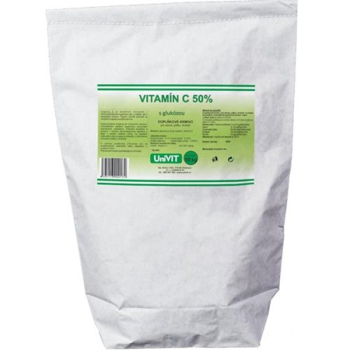 Vitamín C je dôležitým činiteľom v obrane proti infekciám ako u mláďat, tak u dospelých jedincov. Pôsobí priaznivo na rezistenciu kapilár a zrážanlivosť krvi. Ako doplnok stravy je možné použiť na podpornú liečbu pri infekčných ochoreniach, krvácavých stavoch, mimoriadnom zaťažení organizmu, poruchách reprodukcie, inapetencii (nechutenstve), zmenách prostredia a potravy, v období rekonvalescencie av období mliečnej výživy (najmä u teliat). U ošípaných a hydiny je vhodný na prevenciu a terapiu stresových stavov. U hydiny pozitívne ovplyvňuje znášku. Glukóza je nevyhnutná pre fungovanie organizmu. Je to základný a najrýchlejší zdroj energie pre bunky. Spôsob použitia: Podávajte v zmesi so sypkým krmivom alebo v pitnej vode. Prípravok podávajte len v smaltovaných alebo umelohmotných nádobách. Pripravený roztok spotrebujte do 24 hodín. Dietetická a preventívna aplikácia je možná po dobu 5–25 dní. V prípade potreby je možné dávku po dobu 5-7 dní navýšiť 2-3krát a ďalej pokračovať v aplikácii preventívnych dávok. Dávkovanie 50% vitamínu C: cicavce: 5–15 mg na 1 kg živej hmotnosti exotické vtáky: 25–50 mg na 1 liter pitnej vody hydina: 10–25 mg na 1 kg živej hmotnosti (na 125 mg/kg krmiva) morčatá: 0,5 g na 1 l pitnej vody
