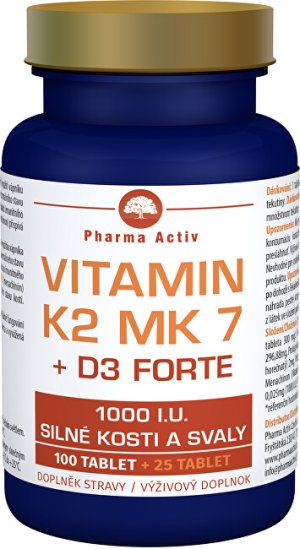 Výživový doplnok Vitamín K2 MK7 + D3 FORTE prispieva k správnemu vstrebávaniu vápnika a fosforu, k normálnemu stavu kostí, k udržaniu správnej funkcie svalov a stavu zubov. Podporuje funkciu imunitného systému a podieľa sa na procese delenia buniek. funkciu zrážanlivosti krvi a udržanie normálneho stavu kostí.