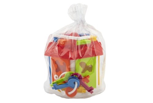 S vkladačkou domček sa malé deti učia rozpoznávať rôzne tvary a farby. Domček má na streche otvory, do ktorých deti vkladajú príslušné tvary, ktoré neprepadnú. Po bokoch má domček dvere, ktoré sú farebne odlíšené a majú svoje vlastné vkladacie zvieratko. Vyslobodíte ich príslušným kľúčom. Každé dvere majú svoj vlastný kľúč. Hra rozvíja zábavnou formou trpezlivosť, orientáciu v celku, logické myslenie a motoriku. Rozmery výrobku 19 x 20 x 19 cm Vhodné pre deti od 12 mesiacov.