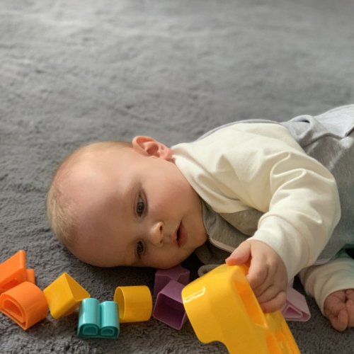 Na hornej strane vkladacieho vedierka Baby Mix je 8 rôznych otvorov, do ktorých je možné vložiť 16 rôznofarebných geometrických tvarov a písmeniek. Hračka rozvíja hmat, zrak a poznávacie schopnosti. Vedierko umožňuje pohodlné prenášanie.