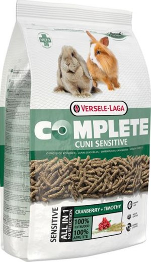 Versele-Laga Complete Cuni Sensitive poskytuje výživu bez zbytočných starostí. Výnimočná chutnosť peliet všetko v jednom predchádza vyberavosti. Tak váš králik dostane všetky potrebné prvky výživy a zostane úplne zdravý. Krmivo s prírodne dlhou vlákninou pomáha predchádzať trichobezoárom a obezite. Optimálny obsah vápnika a výťažok z brusníc pomáha udržiavať zdravé močové cesty. Versele-Laga Complete Cuni sensitive je vyvinuté veterinármi na základe moderných vedeckých poznatkov.