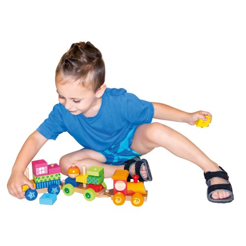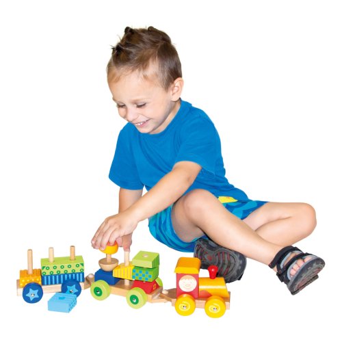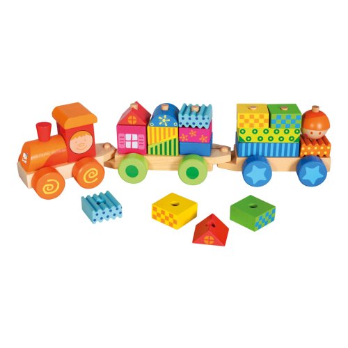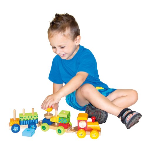 Drevený vláčik s veselými jasnými farbami je ťahacou hračkou a stavebnicou v jednom. Záleží len na fantázii Vašej ratolesti, ako naložia s vagónikmi a ich nákladom v podobe kociek rozmanitých tvarov. Vyrobené z odolného masívneho dreva. Hlavné vlastnosti: 3 podvozky a 18 rôznych kociekodolné drevené prevedenie