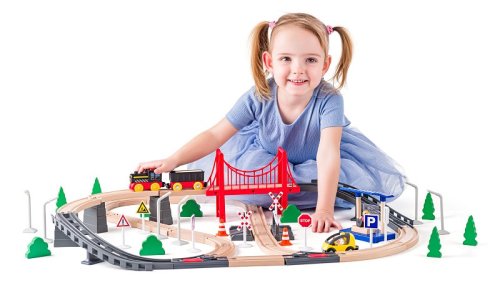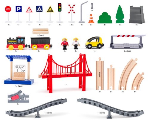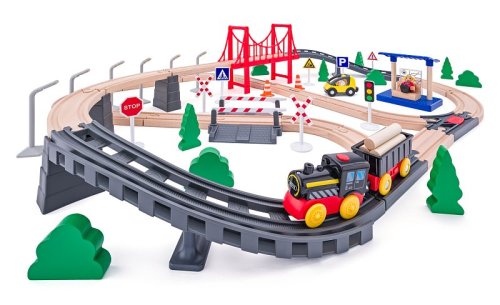 Vláčikodráha s elektrickou mašinkou a mostom, 80 dielov