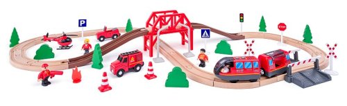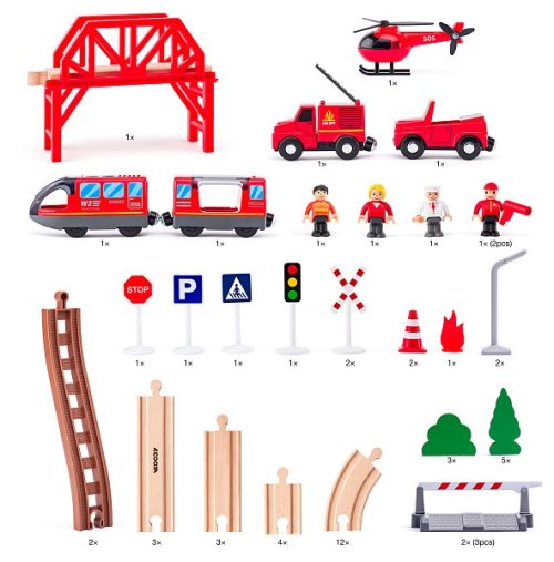 Vláčikodráha s elektrickou mašinkou, hasiči, 60 dielov