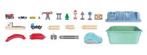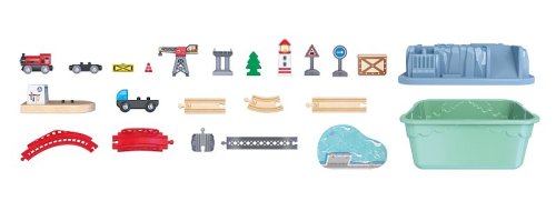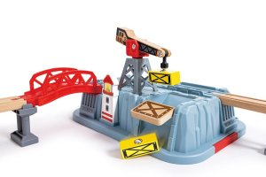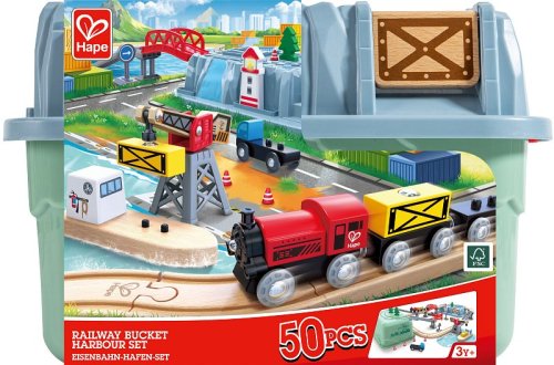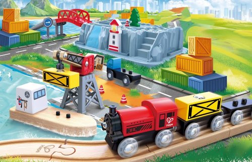 Je čas vyložiť náklad, ktorý cestoval cez more. S touto krásnou vláčikodráhou si vaša ratolesť užije dobrodružstvo, ktoré sa deje v prístave. Pomocou žeriava naloží dôležitý náklad z lode do vlaku a späť. Po hre je možné diely uložiť do boxu, ktorý sa po otočení hore nohami stane súčasťou hernej scenérie. Sada rozvíja fantáziu, sociálne zručnosti i spoluprácu, pri stavaní trate učí samostatnosti. Vlak, vagóny a koľajnice v sade sú kompatibilné so všetkými lokomotívami, príslušenstvom a vláčikovými sadami Hape. Vyrobené z kvalitných, hypoalergénnych materiálov. Sada obsahuje: Lokomotívu Tap & Go, vagóniky, koľajnice, žeriav, prístavisko s loďou, most a ďalšie doplnky. Počet dielikov: 50 ks. Rozmery balenia: 23,5 x 32 x 21,5 cm. Vek: 3+