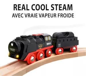 Sada s parnou lokomotívou, ktorá vytvára bezpečný efekt pary , nadchne každé dieťa aj dospelého. Stačí ju umiestniť okolo stojana vianočného stromčeka a sledovať, ako sa vláčik rozbieha po drevených a zasnežených koľajniciach. Vďaka dômyselnému spracovaniu pôsobí pohyb aj para veľmi realisticky. Lokomotíva funguje na 2× AAA batérie (nie sú súčasťou) a vodu je možné ľahko doplniť do zásobníka.