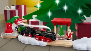 Vianočná vláčikodráha s parnou lokomotívou premení sviatočnú atmosféru na rozprávkový zážitok. Vďaka realistickému parnému efektu a bohatému príslušenstvu sa stane stredobodom vianočnej výzdoby aj obľúbenou hračkou detí od 3 rokov .