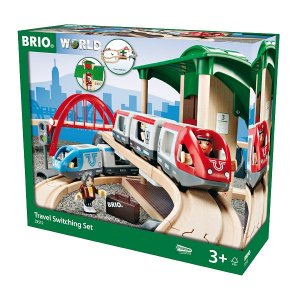 Prestupujte z jedného vlaku na druhý s touto 42-dielnou cestovnou sadou s prestupnou stanicou. Nastúpte do vlaku modrej linky s batériovým pohonom a vydajte sa po koľajniciach cez most až k modernej prestupnej stanici. Pomocou kľučky sa zvezte výťahom medzi nástupišťami a prestúpte na červenú linku, kde už čaká osobný vlak. Prehadzovanie koľají je jednoduché vďaka ručným výhybkám. Nezabudnite ale sledovať signály - môže vás čakať zdržanie. Táto vlaková sada je plne kompatibilná s ostatnými sadami, koľajami a vlakmi BRIO World. Oba vlaky majú klasické magnetické spojky BRIO pre ľahké spojenie medzi sebou aj s ďalšími vozidlami. Obsah balenia (42 dielov): 2 výhybky, 4 lokomotívy cestovného vlaku, 2 vagóny cestovného vlaku, 1 stanica, 3 skalné podpery, 1 visutý most, 2 blokové podpery, 5 figúrok, 1 návestidlo, 1 smerová tabuľa, 1 kufor. Batérie: 2x AAA (batérie nie sú súčasťou balenia). Rozmery balenia: 39 x 45 x 16 cm. Rozmery dráhy: 62 x 112 cm. Vek: 3+