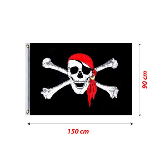 Parádna vlajka s desivým, pirátskym motívom pre skutočných pirátov! Na vlajke nájdeš na jednej strane 2 otvory (cca 11 mm), pre ľahšie uchytenie vlajky na tyč. Rozmery vlajky činia 90 x 150 cm.