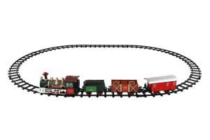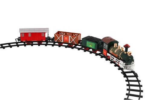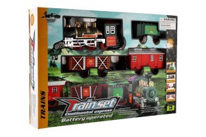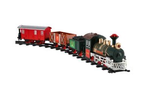 Táto super vlaková súprava koľajami nadchne určite každého chlapca. Postav si trať a nechaj vláčik jazdiť. Občas nezabudni zastaviť a nechať vystúpiť a nastúpiť nových cestujúcich... Balenie obsahuje: lokomotívu, ktoré svietia svetlá, 3 vagóniky, 6 ks zákrut a 2 ks rovných koľají. Na prevádzku sú potrebné 2 x AA batérie do mašinky (nie sú súčasťou). Rozmery okruhu: 107 cm Rozmer balenia: 41 x 28 x 6 cm Nevhodné pre deti do 3 rokov