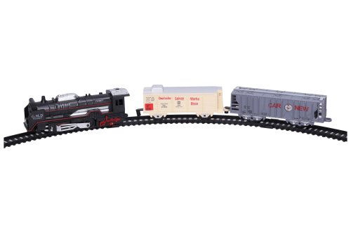 Detailne spracovaná historická vlaková súprava na batérie s bohatým príslušenstvom.