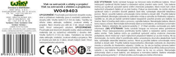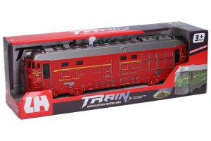 Vlak na zotrvačník s efektmi a projekciou červený. Rozmery 33x8x6 cm. Vydáva svetelné a zvukové efekty, projekcie. Aktivácia tlačidlami na streche (zvuky vlaku a železnice). Batéria 3xAG13, súčasťou balenia.