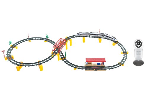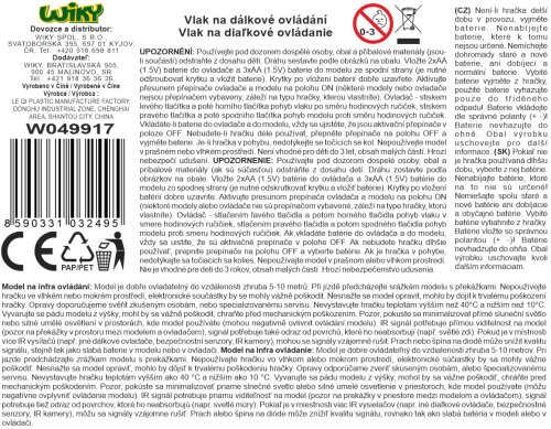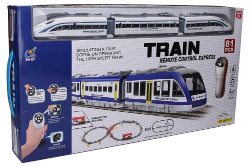 Vlak RC na diaľkové ovládanie s dráhou. Rozmery zostavenej trate 146x64 cm. Dĺžka trate 397 cm. Vlak vydáva svetelné a zvukové efekty. Set obsahuje 81 dielov. Infračervený port. Vagóny sú prepojené magnetmi. Vlak - 3xAA, nie sú súčasťou. Ovládač - 2xAA, nie sú súčasťou. ON/OFF spínač uprostred ovládača. Pohyb v smere hodinových ručičiek - ľavé tlačidlo svieti, stlač horné tlačidlo. Pohyb proti smeru hodinových ručičiek - pravé tlačidlo svieti, stlač dolné tlačidlo. Návod na zostavenie na zadnej strane obalu.