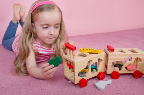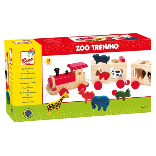 Ťahacia drevená mašinka na kolieskach s dvoma vagónikmi s otváracou mrežou pre množstvo zvieratiek. Ale pozor, každé zvieratko môže do vagóniku len jedným otvorom a musíte nájsť ten správny! Rozmery: 66 x 11 x 10,5 cm, 14 dielov.