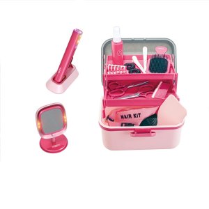 Set je uložený v praktickom ružovom kufríku s držadlom, ktorý uľahčuje prenášanie a zároveň slúži ako úložný priestor pre všetky doplnky. Kufrík je vybavený rozkladacími priehradkami, v ktorých sú starostlivo usporiadané rôzne kadernícke nástroje vrátane hrebeňov, kief, nožníc, spôn a spreja. Každý prvok je zhotovený z plastu a navrhnutý tak, aby bol bezpečný pre deti od troch rokov a zároveň podporoval rozvoj kreativity a predstavivosti pri hraní.