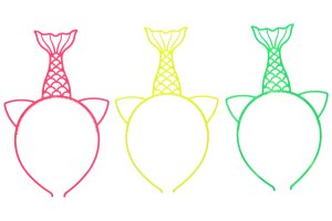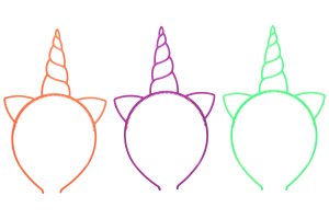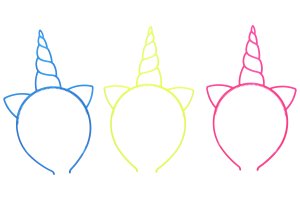 Vlasový doplnok - čelenka s ozdobou mix. Rôzne farby 5 druhov ozdôb - jednorožec, korunka, uši, zajac, ryba Každá ozdoba je v 5 farbách (modrá, zelená, oranžová, žltá, ružová)