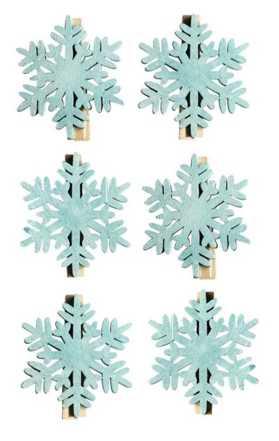 komponenty na zdobenie Vločka drevená na kolíčku 6 cm 6 ks