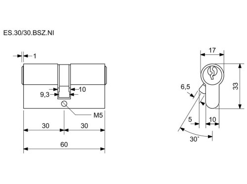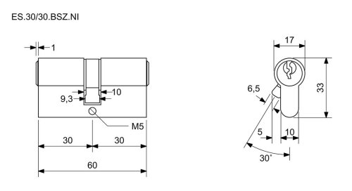 Vložka cylindrická 30+30 6 kl. Ni, 3. trieda bezpečnosti s prestupovou spojkou RICHTER.