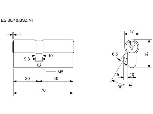 Vložka cylindrická 30+40 6 kl. Ni, 3. trieda bezpečnosti s prestupovou spojkou RICHTER.