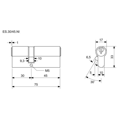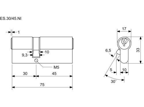 Vložka cylindrická 30 + 45 6 kl. Ni, 3.trieda bezpečnosti RICHTER.