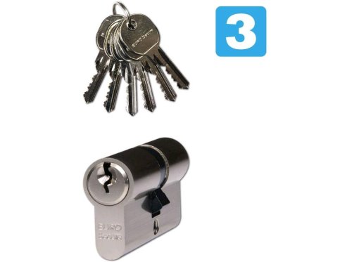 Certifikované v bezpečnostnej triede RC3 podľa STN EN 1627:2012. Certifikát NBÚ typ 2 SS4=2. Bezpečnostná 6-stavítková vložka s odolnosťou proti odvŕtaniu a nedeštruktívnej dynamickej metóde (tzv. bumping). Ochrana proti odvŕtaniu pomocou 6tich prvkov z kalenej ocele. Tvorí ju 5 kolíkov a 1 stavítko. Možnosť spoločného uzáveru - „SU“ - cena, viď Katalóg dielov. 40.000 reálnych kombinácií kľúča. Materiál vložky a kľúčov: mosadz Povrchová úprava: matný nikel (NI) Voľne kopírovateľný kľúč. Balenie obsahuje: 6 ks predĺžených kľúčov, 2 ks skrutiek 50 + 60 mm, identifikačnú kartu. Štandardne sú vložky balené v krabičke. Možno tiež objednať v transparentnom blistri + á 7, - Sk / ks.
