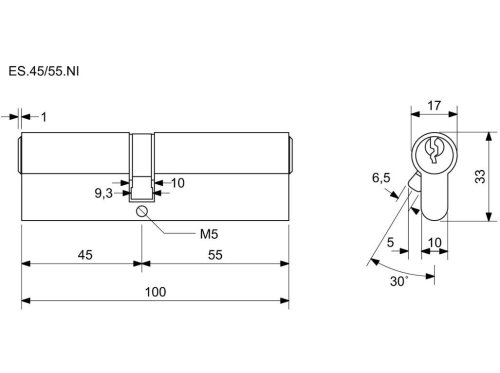 Vložka cylindrická 45 +55 6kl. Ni, 3.trieda bezpečnosti RICHTER