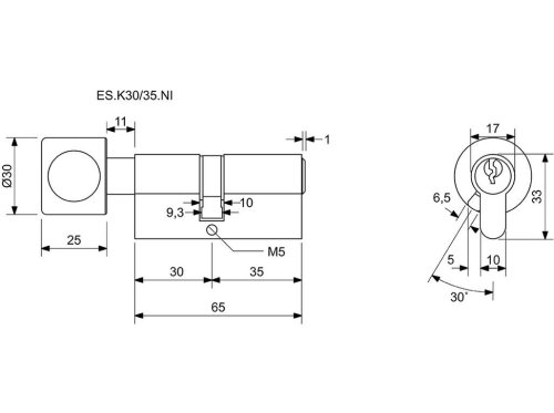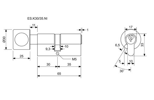 Vložka cylindrická K30+35 s gombíkom 6 kl. Ni, 3. trieda bezpečnosti RICHTER.
