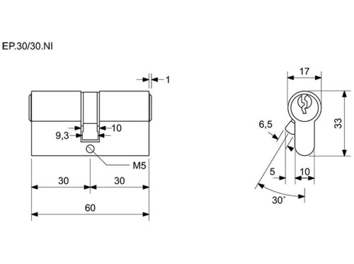 Stavebná 5stavítková vložka. Materiál vložky a kľúčov: mosadz Povrchová úprava: matný nikel (NI) Možnosť spoločného uzáveru - „SU“ - cena mimo uvedené rozmery nižšie, viď Katalóg dielov. Voľne kopírovateľný kľúč. Balenie obsahuje: 3 ks kľúčov 2 ks skrutiek 50 + 60 mm Štandardne sú vložky balené v krabičke. Možno tiež objednať v transparentnom blistri + á 7, - Sk / ks.