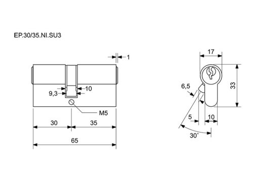 Stavebná 5stavíková vložka na spoločný uzáver EURO Plus. Certifikované podľa EN 1303-2015. Stavebná 5stavítková vložka. Materiál vložky a kľúčov: mosadz Povrchová úprava matný nikel (Ni). SU = Spoločný uzáver - cena mimo uvedených rozmerov, viď Katalóg dielov. Voľne kopírovateľný kľúč.