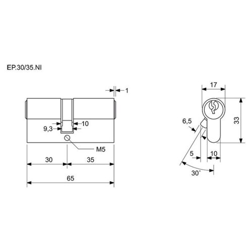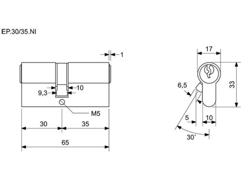 Vložka cylindrická stavebná EP 30+35 3 kl. Ni RICHTER.