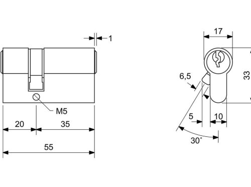Vložka stavebná EURO MINUS 20+35, 3 kľúče, Ni, RICHTER.