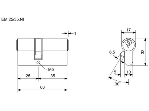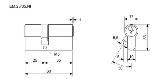 Vložka stavebná EURO MINUS 25+35, 3 kľúče, Ni, RICHTER.