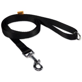 Vodítko z popruhu v jednofarebnom prevedení. Vodítko je pevne prešité, v uchu všitý zváraný krúžok na skrátenie na polovicu.