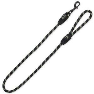 Kvalitná karabína zaručuje bezpečné vodenie zvieraťa. Gumové zaliatie konca lana pre vytvorenie pevného úchopu vodítka. Dostupné v piatich farebných variantoch (čierna, modrá, limetka, oranžová, ružová).