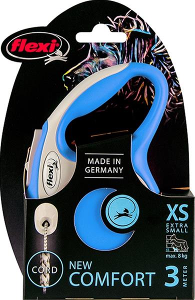 Dokonale navrhnuté dvojfarebné vodítko Vás upúta na prvý pohľad. New Comfort ponúka všetky funkcie, ktoré potrebujete a preto si ho čoskoro zamilujete! Vylepšený brzdový systém s krátkym zdvihom umožňuje viac kontroly, ergonomické držadlo je nastaviteľné podľa veľkosti ruky (od veľkosti M). Možno pridať aj Multi Box na ukladanie maškrty či sáčkov (od veľkosti S). Rodinná firma flexi vyrába výhradne na území Nemecka. V závode v Bargteheide pri Hamburgu vzniká všetko, počnúc návrhom až po výrobu vysoko kvalitných vodítok – Made in Germany. Firma flexi je vynálezcom samonavíjacieho vodítka a jednotkou na svetovom trhu, exportuje do viac ako 90 krajín sveta. Originálne samonavíjacie vodítka flexi sa vyznačujú patentovaným, po technickej stránke najmodernejším pružinovým systémom a komfortným ovládaním. Sú vyrábané z vysoko kvalitných materiálov, exkluzívne manuálne spracované a zostavené. Vodítka prechádzajú pred expedíciou mnohými kontrolami kvality. Veľkosť: XS – vhodné pre psy s hmotnosťou do 8 kg. Typ vodítka: Navíjacie - lanko. Dĺžka opasku/lanka: 3 m Farba: modré