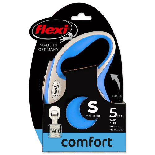 Dokonale navrhnuté dvojfarebné vodítko Vás upúta na prvý pohľad. New Comfort ponúka všetky funkcie, ktoré potrebujete a preto si ho čoskoro zamilujete! Vylepšený brzdový systém s krátkym zdvihom umožňuje viac kontroly, ergonomické držadlo je nastaviteľné podľa veľkosti ruky (od veľkosti M). Možno pridať aj Multi Box na ukladanie maškrty či sáčkov (od veľkosti S). Rodinná firma flexi vyrába výhradne na území Nemecka. V závode v Bargteheide pri Hamburgu vzniká všetko, počnúc návrhom až po výrobu vysoko kvalitných vodítok – Made in Germany. Firma flexi je vynálezcom samonavíjacieho vodítka a jednotkou na svetovom trhu, exportuje do viac ako 90 krajín sveta. Originálne samonavíjacie vodítka flexi sa vyznačujú patentovaným, po technickej stránke najmodernejším pružinovým systémom a komfortným ovládaním. Sú vyrábané z vysoko kvalitných materiálov, exkluzívne manuálne spracované a zostavené. Vodítka prechádzajú pred expedíciou mnohými kontrolami kvality. Veľkosť: S – vhodné pre psy s hmotnosťou do 15 kg. Typ vodítka: Navíjací – opasok. Dĺžka opasku/lanka: 5 m Farba: modrá