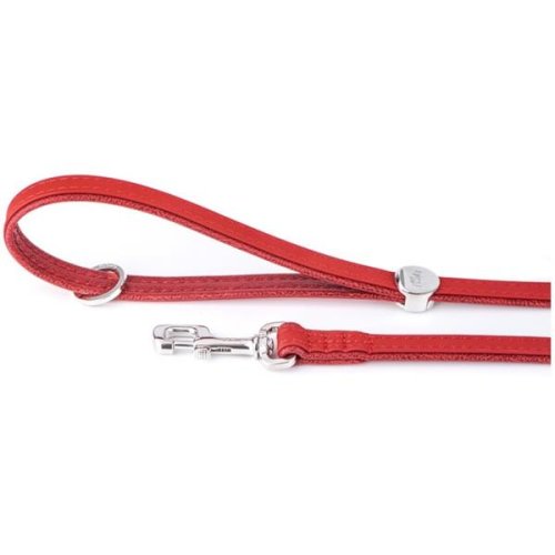 Vodítko pre psov z kolekcie Bilbao z jemne spracovanej červenej kože s bielou bronzovou povrchovou úpravou. Vodítko je vyrobené z kvalitného materiálu. Rozmery: 110 cm x 15 mm (dĺžka x šírka)