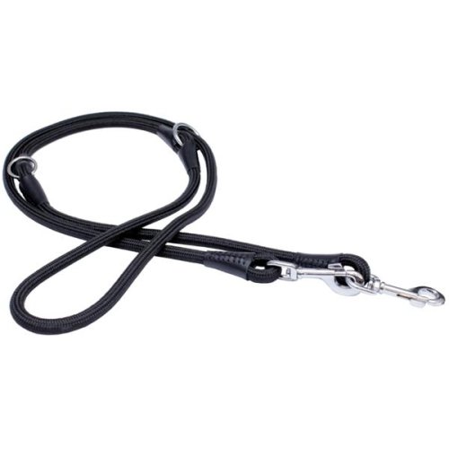 Prepínacie vodítko z veľmi pevného lana je vhodné pre stredné a veľké plemená. Spoje sú zvarené, prešité a zabezpečené koženou krytkou. Po dĺžke lana je niekoľko zváraných krúžkov, pomocou ktorých možno vodítko predlžovať a skracovať podľa potreby. Vďaka koženým prvkom sa vodítko hodí aj ku koženým obojkom. Rozmery: dĺžka 240 cm Ø 12 mm Farba: čierna