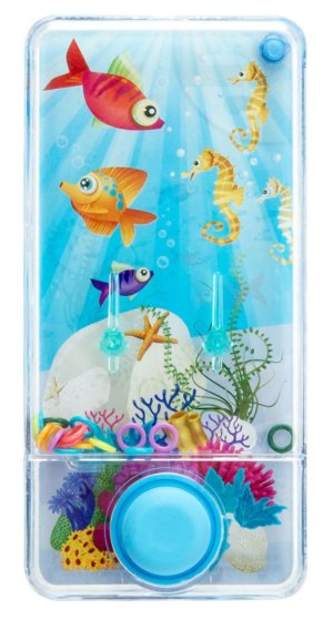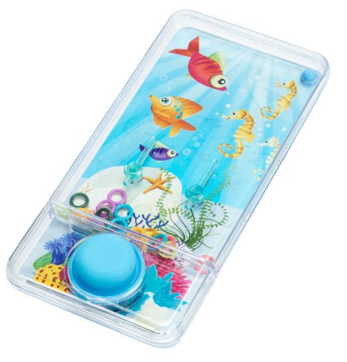 Vodná hra - naplňte vodou a stlačením tlačidla rozprúdite vodu a pokúste sa dostať krúžky na svoje miesto. Vhodné pre deti od 3 rokov. Rozmery 13,5 x 6,5 cm.