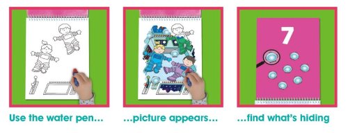 Vychádza z hry „Who's Hiding?“ (Na schovávačku). Tieto omaľovánky obsahujú ešte ďalšiu aktivitu. Pomocou vodného pera dieťa môže odkryť obrázok so zvieratkami a predmetmi. Obrázky sa vyfarbia a potom zase zmiznú, a tak stále dookola. Ideálne pre cestovanie. Rozmery knižky: 265 x 210 x 147 mm