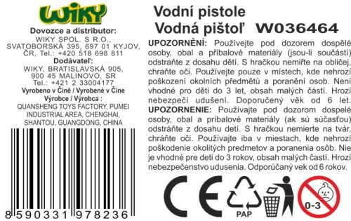Vodná pištoľ. Rozmery 23x5x17 cm.